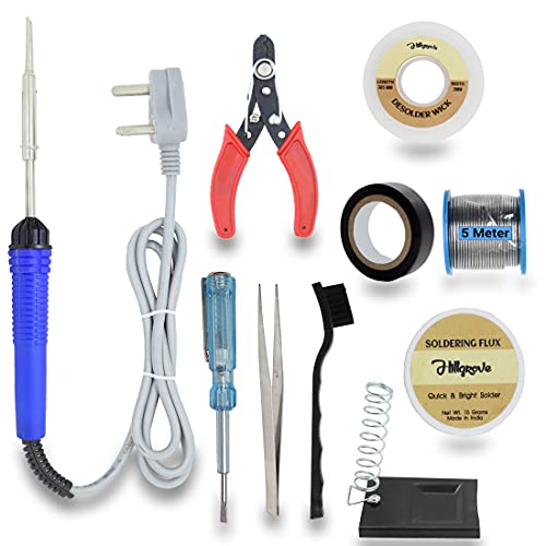 Beginners 11in1 Mobile Soldering and Desoldering Equipment Tool Machine Combo Kit Set with Flux Paste and Wire 25 W Simple (Flat, Pointed Tip |